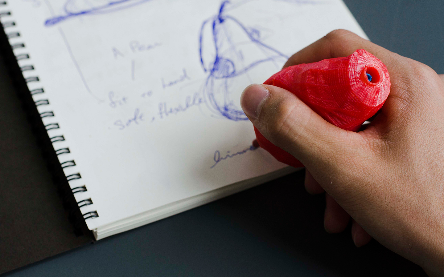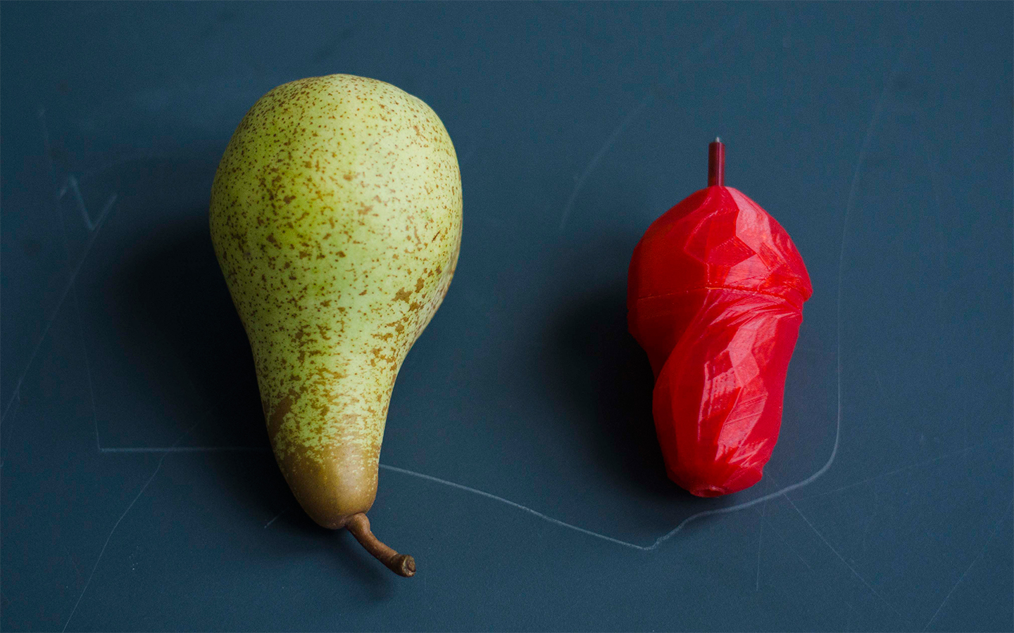 In an early stage of the project, I choose a pear as a original object which has a peculiarity of “Fit for human hand” and apply the component to a Pen of the figure.